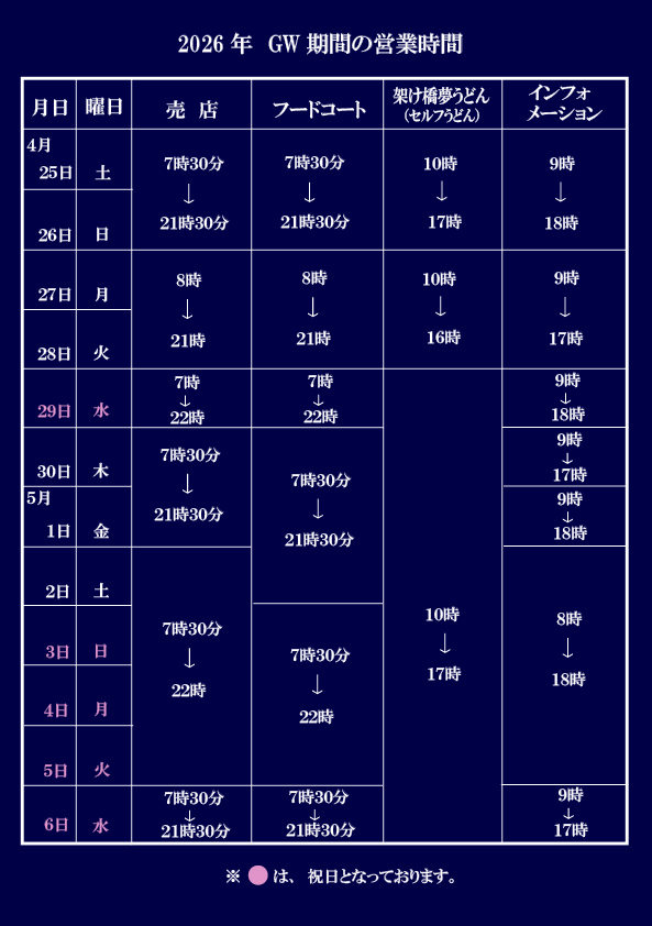 2026年G.W. 営業時間変更のお知らせ 2026.04.10 重要なお知らせ 平素よりご愛顧いただきまして、誠にありがとうございます。 2026年G.W.の営業時間のお知らせです。 いつもより時間を延長して皆様のお越しをお待ちしております。 運転に気を付けてお越しくださいませ🚙🚗🚙🚗 このページをSNSでシェアする